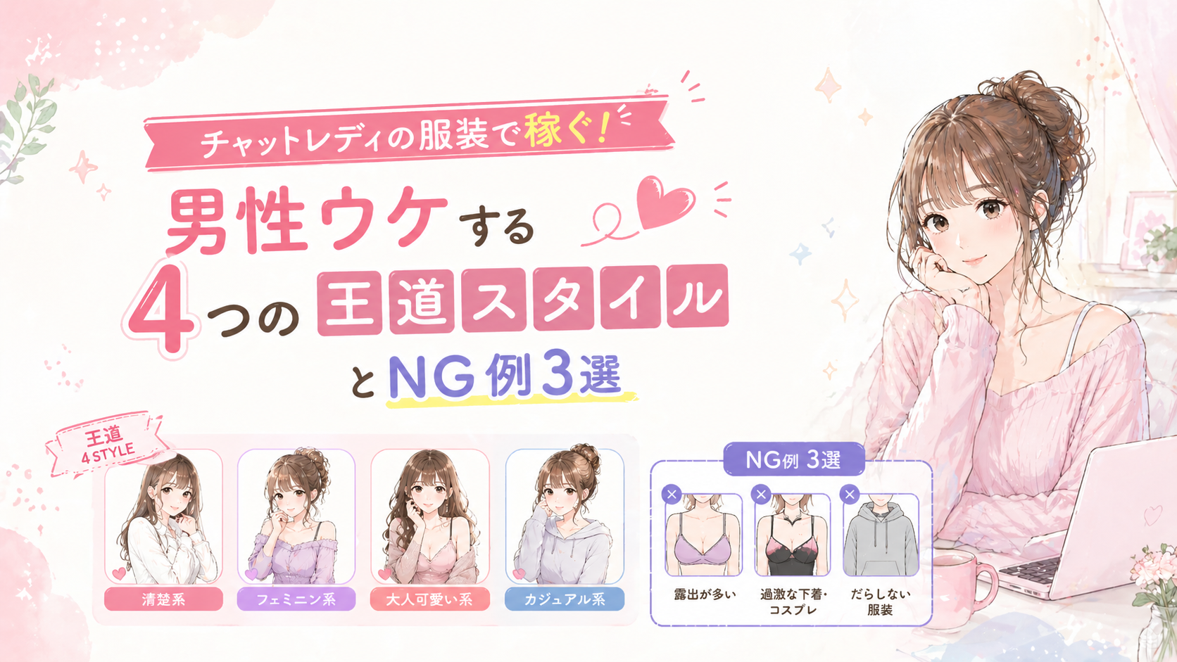 チャットレディの服装で稼ぐ!男性ウケする4つの王道スタイルとNG例3選